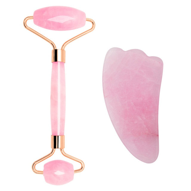Dropshipping Jade Roller Face Massager Rose Quartz Face Roller Massage Gua Sha Facial Roller Face Slimmer Massager Lift Skincare